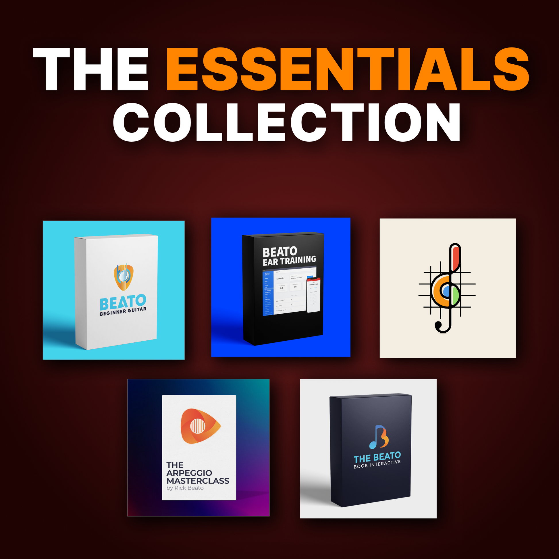 The Essentials ($99) includes 5 core courses: Ear Training, Music Theory, Beginner Guitar, Songwriting Theory, and Arpeggios. Perfect if you want the fundamentals without the advanced technique courses.